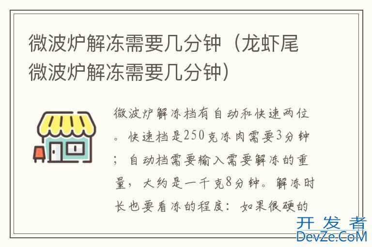 品牌型号:美的微波炉 系统:X3-233A开发者_开发百科 微波炉解冻档有自动和快速两位。快速档是250克冻肉需要3分钟;自动档需要输入需要解冻的重量,大约是一千克8分钟。解冻时长也