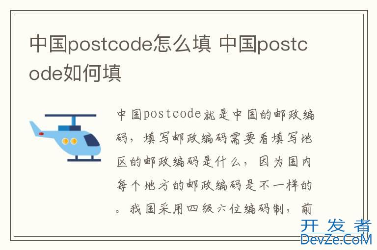 开发者_StackOverflow中文版 中国postcode就是中国的邮政编码,填写邮政编码需要看填写地区的邮政编码是什么,因为国内每个地方的邮政编码