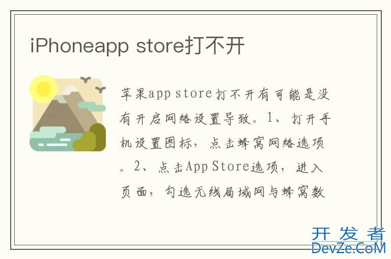 品牌型号:iPhone13 pro 系统:IOS15.4以iPhone13 pro为例,iPhoneapp store打不开有可能是没有开启网络设置导致。分为2步,开发者_StackOverflow中