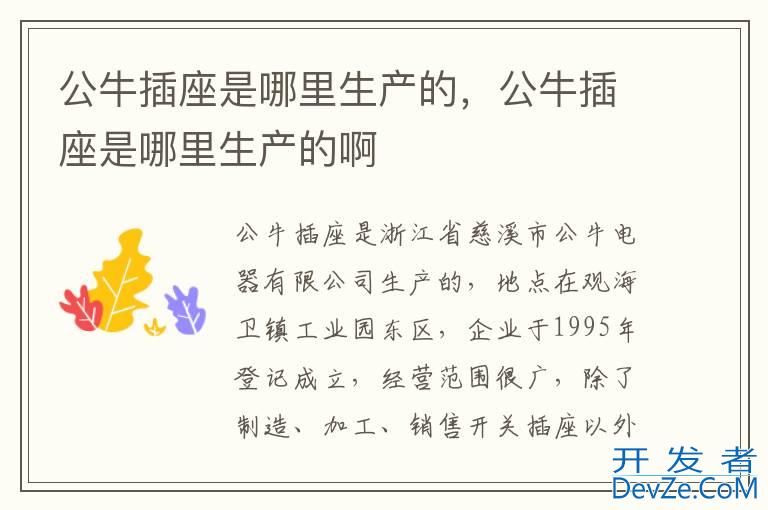 品牌型号:公牛插座 系统:GN-B3043公牛插座是浙江省慈溪市公牛电器有限公司生产的,地点在观海卫镇工业园东区,企业于1995年登记成立,经营范围很广,除了制造、加工、销售开关插座以外,还包括电线、