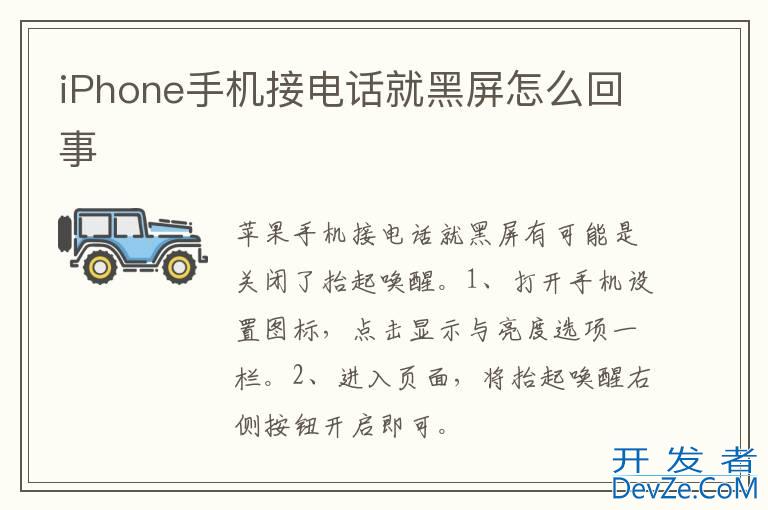 品牌型号:iPhone13 pro 系统:IOS15.4以iPhone13 pro为例,iPhone手机接电话就黑屏有可能是关闭了抬起唤醒。分为2步,具体步骤如下:开发者_开发问答