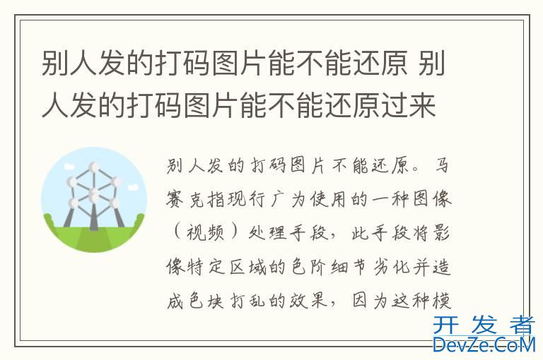 品牌型号:联想拯救者Y9000P 系统:Windows 11 软件版本:Photoshop 2021别人发的打码图片不能还原。马赛克指现行广为使用的一种图像(视频)处理手段,此手段将影像特定区域的色阶