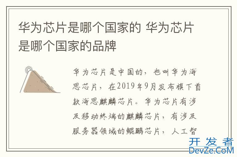 品牌型号:华为P50 系统:HarmonyOS 2华为芯片是中国的,也叫华为海思芯片,在2019年9月发布旗下首款海思麒麟芯片。华为芯片有涉及移动终端的麒麟芯片,有涉及服务器领域的鲲鹏芯片,人工智能领