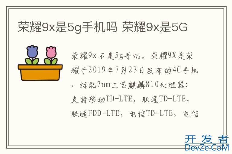 品牌型号:荣耀9X 系统:EMUI 9.1.1荣耀9x不是5g手机。荣耀9X是荣耀于2019年7月23日发布的4G手机,标配7nm工艺麒麟810处理器;支持移动TD-LTE,联通TD-LTE,联通FD