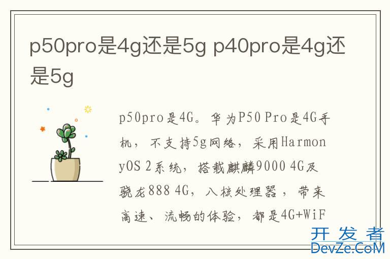 品牌型号:华为P50 Pro 系统:HarmonyOS 3开发者_运维问答 p50pro是4G。华为P50 Pro是4G手机,不支持5g网络,采用HarmonyOS 2系统,搭载麒麟9