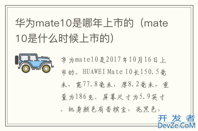 品牌型号:华为mate10 系统:HarmonyOS 3华为mate10是2017年10月16日上市的。HUAWEI Mate 10长150.5毫米,宽77.8毫米,厚8.2毫米,重量为186克。屏幕