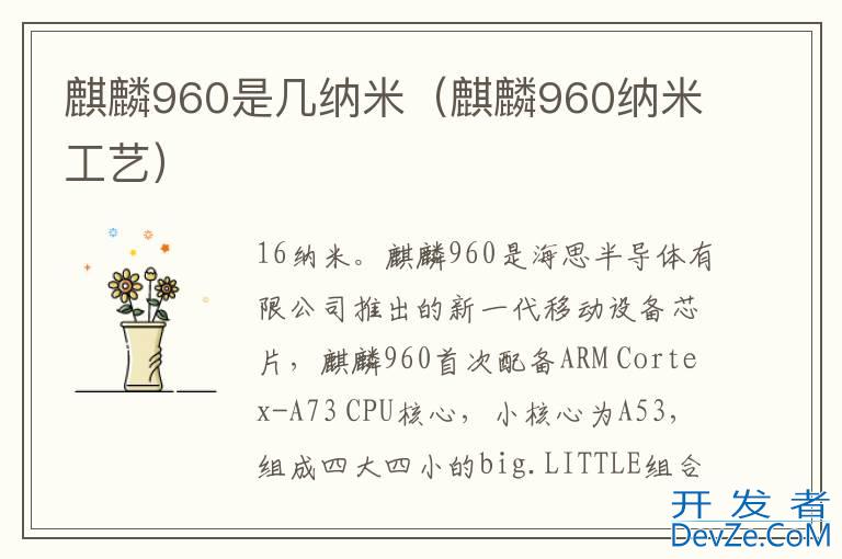 品牌型号:华为Mate9 系统:HarmonyOS 2麒麟960是16纳米。麒麟960是海思半导体有限公司推出的新一代移动设备芯片,麒麟960首次配备ARM Cort开发者_Python百科ex-A7