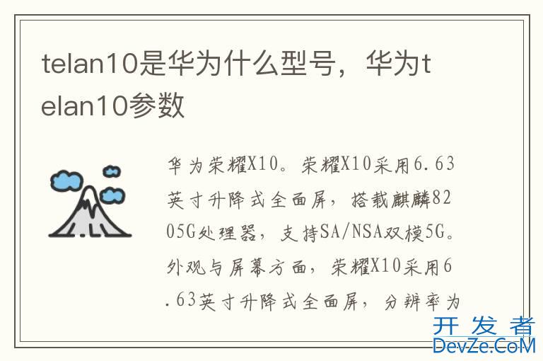 品牌型号:华为荣耀X10 系统:MagicUI3.1.1开发者_运维百科 telan10是华为荣耀X10。荣耀X10采用6.63英寸升降式全面屏,搭载麒麟8205G处理器,支持SA/NSA双模