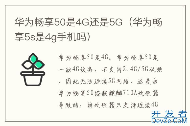 品牌型号:华为畅享50 系统:HarmonyOS 2华为畅享50是4G。华为畅享50是一款4G设备,不支持2.4G/5G双频,因此无法连接5G网络,这是由华为畅享50搭载麒麟710A处理器导致的,该处
