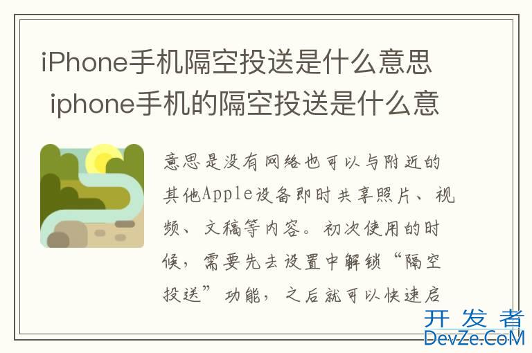 品牌型号:iPhone13 pro 系统:IOS15.4iPhone手机隔空投送意思是没有网络也可开发者_Go百科以与附近的其他Apple设备即时共享照片、视频、文稿等内容。初次使用的时候,需要先去设