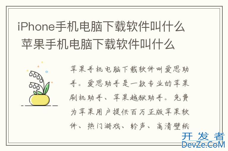 品牌型号:联想拯救者Y9000P 系统:Windows 11 软件版本:爱思助手7.98.65iPhone手机电脑下载软件叫爱思助手。爱思助手是一款专业的iPhone刷机助手、iPhone越狱助手。免