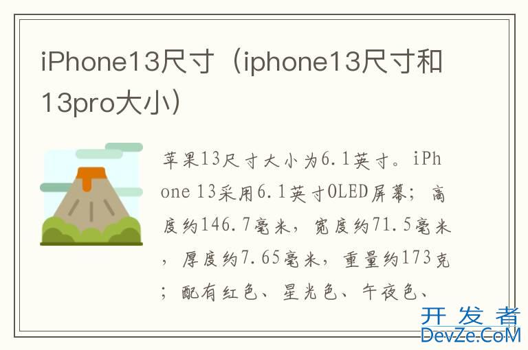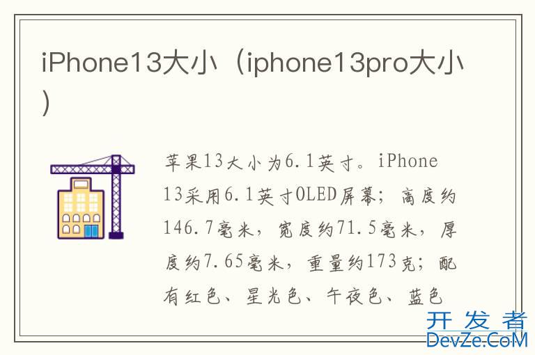 品牌型号:iPhone13 pro 系统:IOS15.5iPhone13尺寸大小为6.1英寸。iPhone13 pro采用6.1英寸OLED屏幕;高度约146.7毫米,宽度约71.5毫米,厚度约7.6