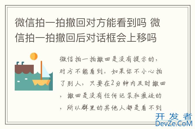 品牌型号:华为 P50 Pocket 系统:HarmonyOS 3 软件版本:微信8.0.25微信拍一拍撤回是没有提示的,对方不能看到。如果你不小心拍开发者_如何学Python了别人,只要在2分钟内及