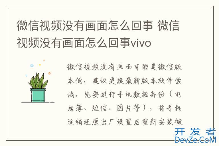 品牌型号:iPhone13 pro pro 系统:IOS15.4 软件版本:微信8.0.22微信视频没有画面可能是微信版本低,建议更换最新版本软件尝试。先要进行手机数据备份(电话簿、短信、图片等),将
