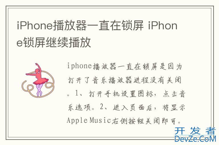 品牌型号:iPhone13 pro 系统:IOS15.4以iPhone13 pro为例,iPhone播放器一直在锁屏是因为打开了音乐播放器进程没有关闭。分为2步,具体步骤如下:开发者_如何学运维