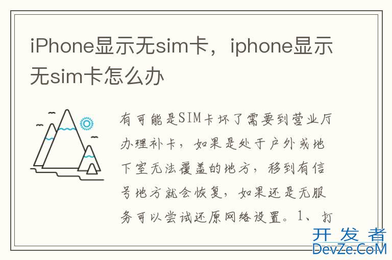 品牌型号:iPhone13 pro 系统:IOS15.4以iPhone13 pro为例,有可能是SIM卡坏了需要到营业厅办理补卡,如果是处于户外或地下室无法覆盖的地方,移到有信号地方就会恢复,如果还是