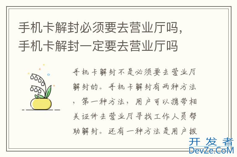 品牌型号:华为P50 系统:HarmonyOS3手机卡解封不是必须要去营业厅解封的。手机卡解封有两种方法,第一种方法,用户可以携带相关证件去营业厅寻找工作人员帮助解封。还有一种方法是用户拨打相应运营商