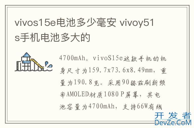 品牌型号:vivoS15e 系统:OriginOSvivos15e电池为4700mAh。vivoS15e这款手机的机身尺寸为159.7x73.6x8.49mm,重量为190.8克。采用90赫兹刷新频率