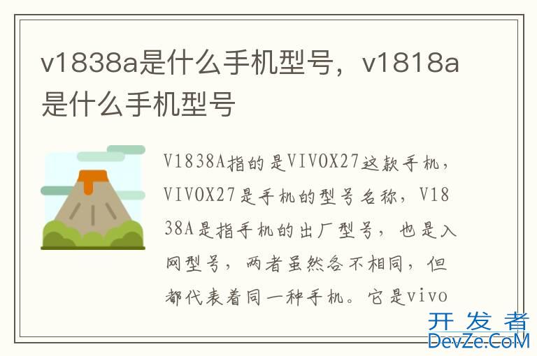 品牌型号:vivo X27 系统:FuntouchOS 9V1838A指的是VIVOX27这款手机,VIVOX27是手机的型号名称,V1838A是指手机的出厂型号,也是入网型号,两者虽然各不相同,但都
