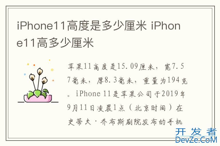 品牌型号:iPhone11 系统:IOS15.4iPhone11高度是15.09厘米,宽7.57毫米,厚8.3毫米,重量为194克。iPhone 11 pro是iPhone公司于2019年9月11日凌