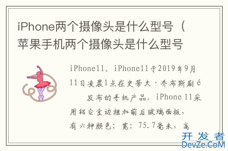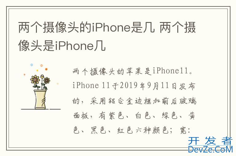 品牌型号:iPhone11 pro 系统:IOS15.4两个摄像头的iPhone是iPhone11 pro。iPhone 11 pro于2019年9月11日发布的,采用铝合金边框加前后玻璃面板,有紫色