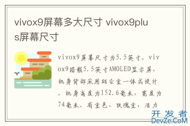 品牌型号:vivox9 系统:FuntouchOS 3.0vivox9屏幕尺寸为5.5英寸。vivox9搭载5.5英寸AMOLED显示屏,机身背部采用铝合金一体式设计。机身高度为152.6毫米,宽度为