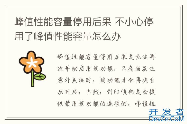 品牌型号:iPhone13 pro pro 系统:IOS15.4开发者_Go百科 峰值性能容量停用后果是无法再次手动启用该功能,只有当发生意外关机时,该功能才会再次自动开启,