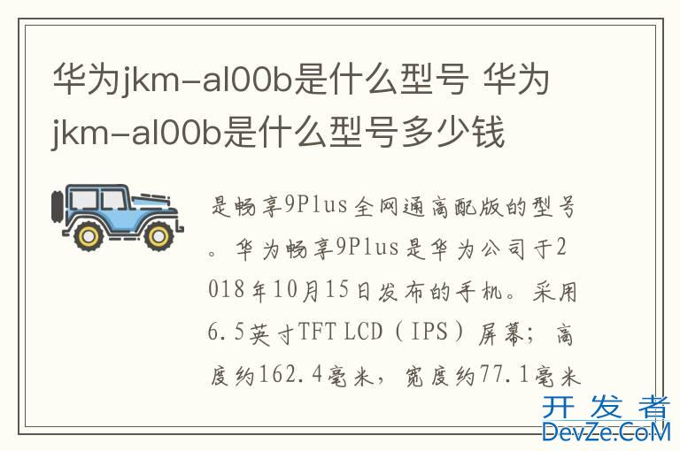 品牌型号:华为畅享 9S Plus 系统:EMUI 8.2华为jkm-al00b是畅享9Plus全网通高配版的型号。华为畅享 9SPlus是华为公司于2018年10月15日发布的手机。采用6.5英寸T