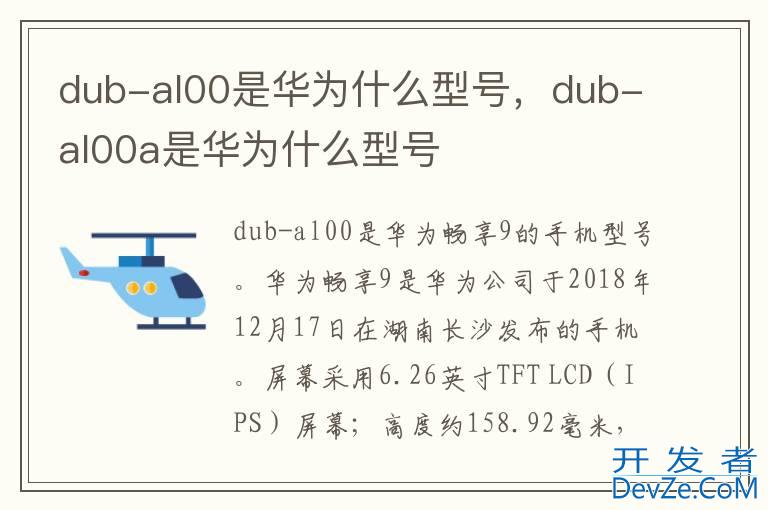 品牌型号:华为畅享 9S 系统:EMUI 8.2dub-al00是华为畅享 9S的手机型号。华为畅享 9S是华为公司于2018年12月17日在湖南长沙发布的手机。屏幕采用6.26英寸TFT LCD(I