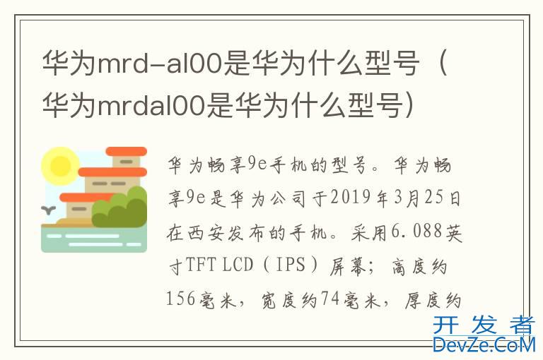 品牌型号:华为畅享 9Se 系统:EMUI 8.2开发者_JAVA技巧 华为mrd-al00是华为畅享 9Se手机的型号。华为畅享 9Se是华为公司于2019年3月