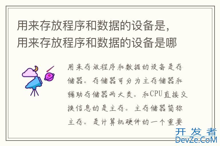 品牌型号:网络存储服务器 系统:TS5024用来存放程序和数据的设备是存储器。存储器可分为主存储器(简称主存或内存)和辅助存储器(简称辅存或外存)两大类。和CPU直接交换信息的开发者_JS百科是主存。