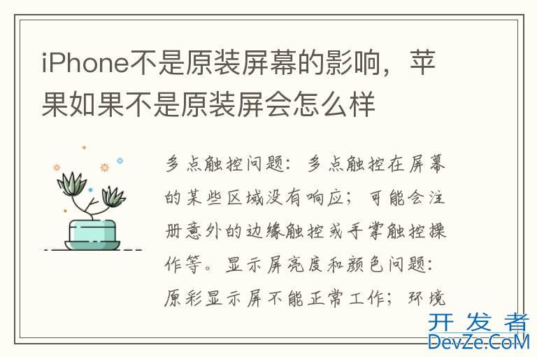 品牌型号:iPhone13pro max 系统:IOS15.4不是原装屏幕产生的影响:1、多点触控问题:多开发者_如何学C点触控在屏幕的某些区域没有响应;多点触控性能降低,例如遗漏屏幕触控操作或触控操