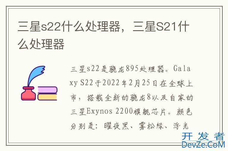 品牌型号:Galaxy S22 系统:Android 12三星s22是骁龙895处理器。Galaxy S22于2022年2月25日在全球上市,搭载全新的骁龙8以及自家的三星Exynos 2200旗舰芯