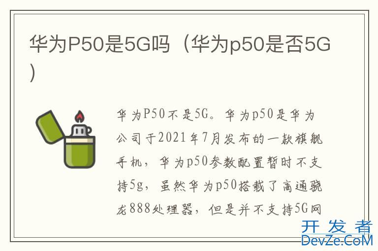 品牌型号:华为P50 系统:HarmonyOS 2华为P50不是5G。华为p50是华为公司于2021年7月发布的一款旗舰手机,华为p50参数配置暂时不支持5g,虽然华为p50搭载了高通骁龙888处理器