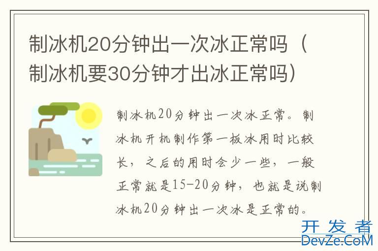 品牌型号:惠康制冰机 系统:HZB-12A制冰机20分钟出一次冰正常。制冰机开机制作第一板冰用时比较长,之后的用时会少一些,一般正常就是15-20分钟,也就是说制冰机20分钟出一次冰是正常的。但如果制