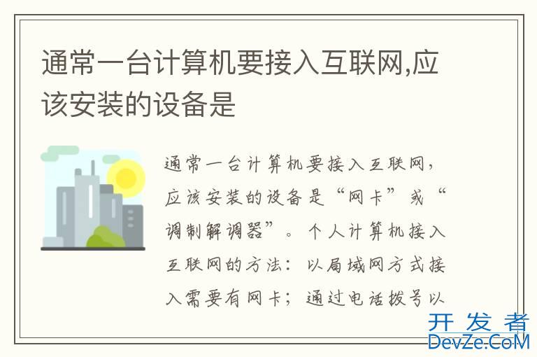 品牌型号:联想拯救者Y9000P 系统:Windows 11通常一台计算机要接入互联网,应该安装的设备是“网卡”或“调制解调器”。个人计算机接入互联网的方法:以局域网方式接入需要有网卡;通过电话拨号以