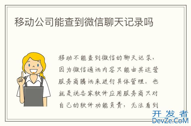 品牌型号:iPhone13 pro pro 系统:iOS 16.0 软件版本:微信8.0.28移动不能查到微信的聊天记录,因为移动公司只是提供信号接入和传递服务,但对于运行的程序通讯具体内容是无法进行