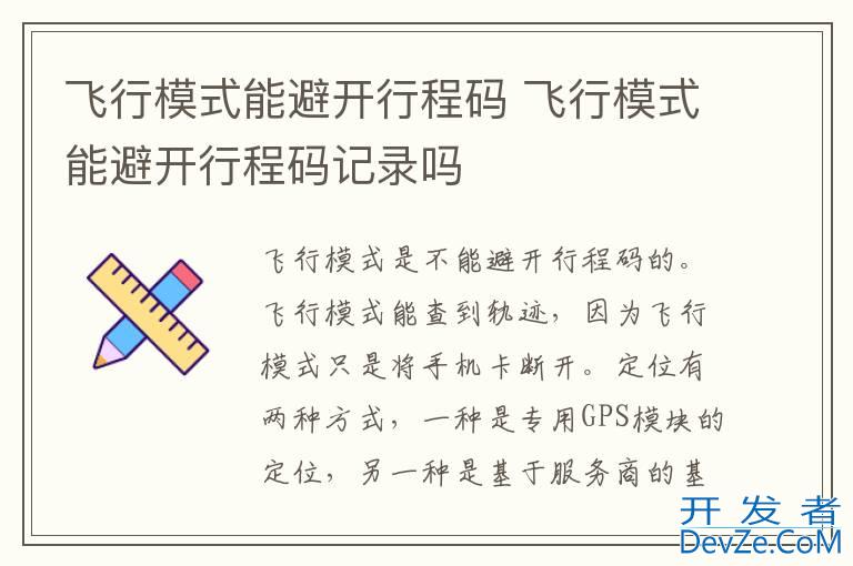 品牌型号:iPhone开发者_运维百科13 pro pro 系统:IOS15.5 软件版本:微信8.0.26飞行模式是不能避开行程码的。飞行模式能查到轨迹,因为飞行模式只是将手机卡断开。定位有两种方式