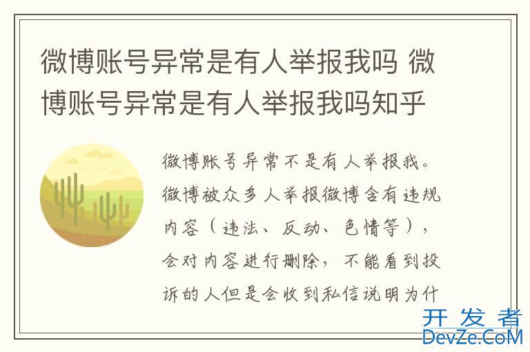 品牌型号:iPhone13 pro pro 系统:iOS 16.0 软件版本:微博12.9.1微博账号异常不是有人举报我。微博被众多人举报微博含有违规内容(违法、反动、色情等),会对内容进行删除,不能