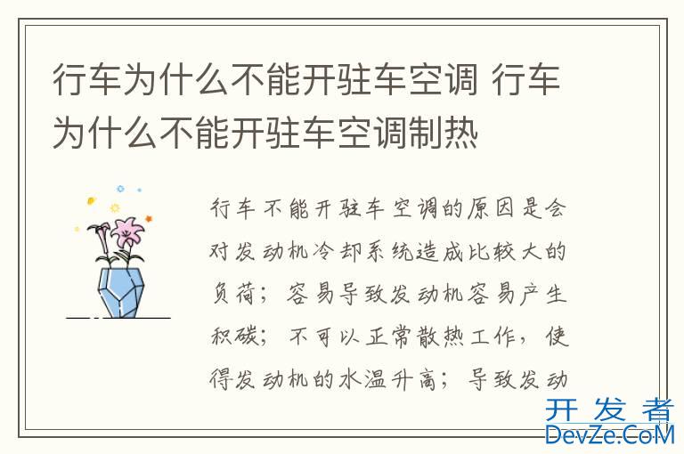 品牌型号:闪电客驻车空调 系统:SDK-92开发者_StackOverflow中文版 行车不能开驻车空调的原因是会对发动机冷却系统造成比较大的负荷;容易导致