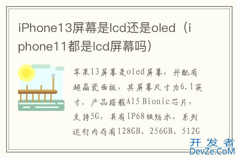 品牌型号:iPhone13 pro 系统:iOS 16.0iPhone13屏幕是oled屏幕,并配有超晶瓷面板,其屏幕尺寸为6.1英寸。产品搭载A15 Bionic芯片,支持5G,具有IP68级防水,