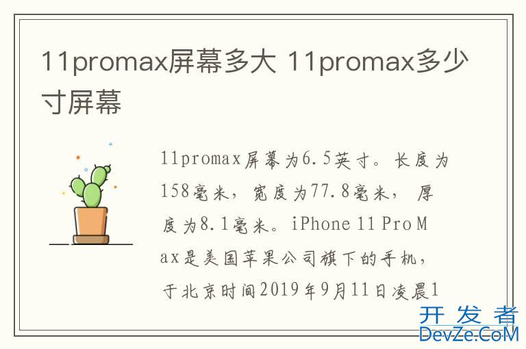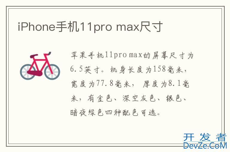品牌型号:iPhone 11 pro Pro Max 系统:IOS15.411prom开发者_开发百科ax屏幕为6.5英寸。长度为158毫米,宽度为77.8毫米, 厚度为8.1毫米。iPhone 11