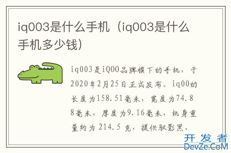 品牌型号:iq003 系统:iQOOUI1.5iq003是iQOO品牌旗下的手机,于2020年2月25日正式发布。iq00的长度为158.51毫米,宽度为74.88毫米,厚度为9.16毫米,机身重量约