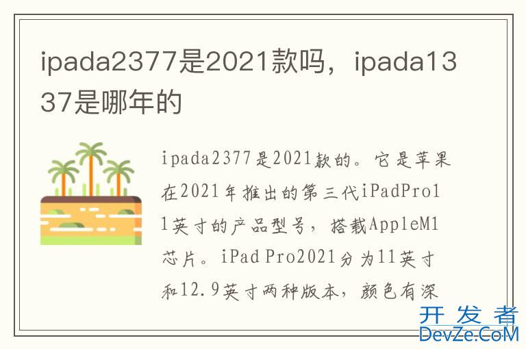 品牌型号:iPad airPro3 系统:iPad airOS15.4ipada2377是2021款的。它是iPhone在2021年推出的第三代iPad airPro11英寸的产品型号,搭载Apple