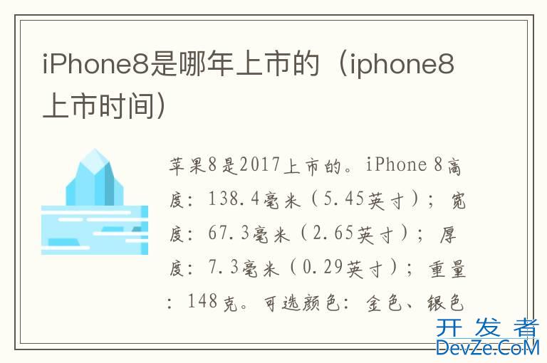 品牌型号:iPhone8 系统:IOS15.4iPhone8是2017上市的。iPhone8高度:138.4毫米(5.45英寸);宽度:67.3毫米(2.65英寸);厚度:7.3毫米(0.29英寸);