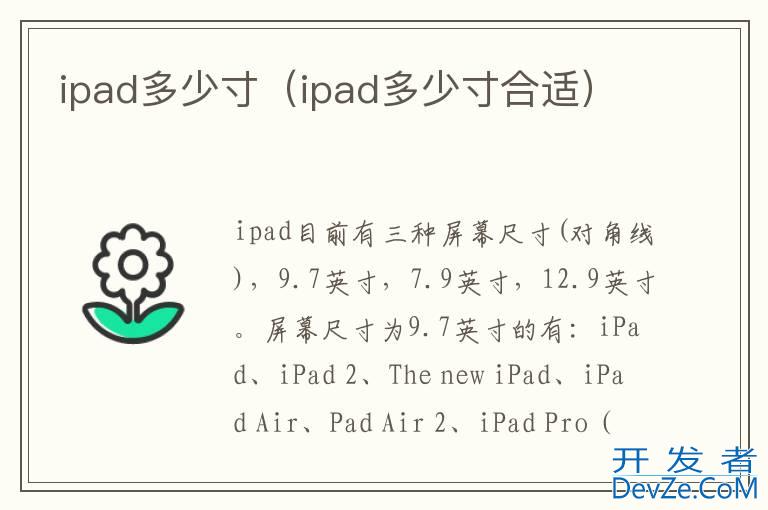 品牌型号:iPad air Pro2021 系统:iPad airOSipad目前有三种屏幕尺寸(对角线),9.7英寸,7.9英寸,12.9英寸。屏幕尺寸为9.7英寸的有:iPad air、iPad