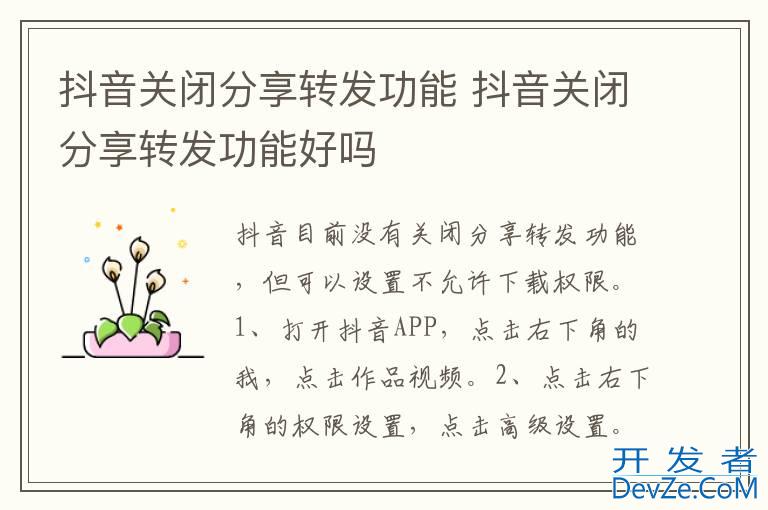 品牌型号:iPhone13 pro 系统:IOS15.4.1 软件版本:抖音20.2.0以抖音20.2.0为例,抖音目前没有关闭分享转发功能,但可以设置不允许下载权限。分为3步,具体步骤如下:1进入抖