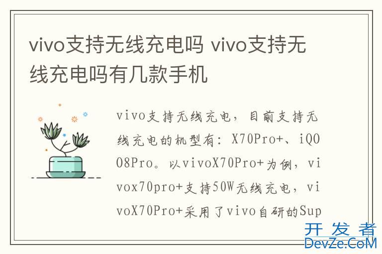 品牌型号:vivo X70 Pro+ 系统:OriginOS 1.0 vi开发者_开发技巧vo支持无线充电,但不是所有的vivo都支持无线充电。目前支持无线充电的机型有:X70 Pro+、iQOO 8