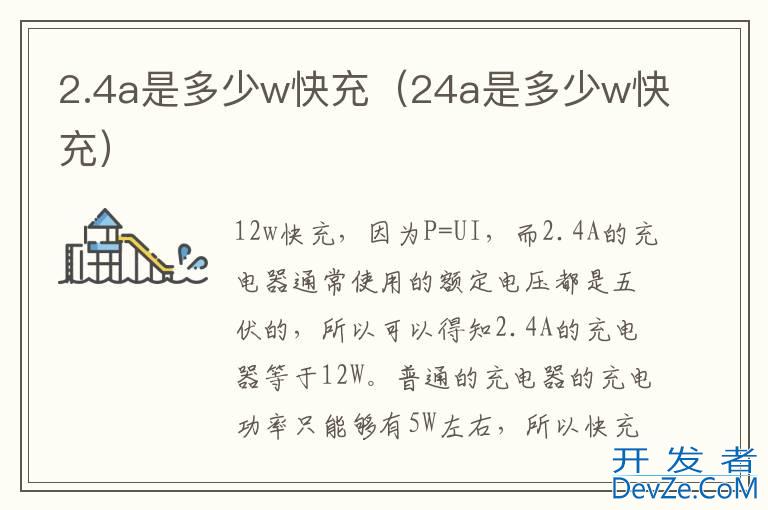 品牌型号:开发者_StackOverflow倍思快充 系统:CCXFK20C2.4a是12w快充,因为P=UI,而2.4A的充电器通常使用的额定电压都是五伏的,所以可以得知2.4A的充电器等于12W。
