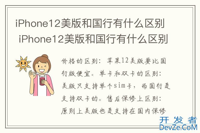 品牌型号:iPhone12 pro美版&&iPhone12 pro国行 系统:IOS15.4开发者_JAVA技巧 1、价格的区别:iPhone12美版要比国行版便宜。2、单卡和双